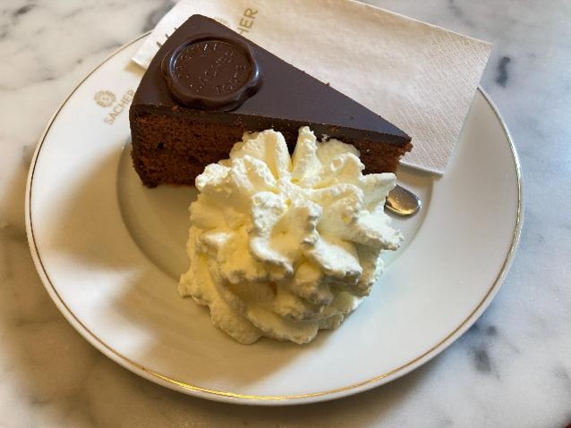 ザッハトルテ1つで10.5ユーロです…。